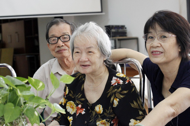 Nhà biên kịch Nguyễn Thị Hồng Ngát (bìa phải) cùng các thành viên Hội Điện ảnh Việt Nam tới thăm các nghệ sĩ tại viện dưỡng lão năm 2016. Trong ảnh là NSND Tuệ Minh (giữa) - Ảnh: GIA HOÀNG