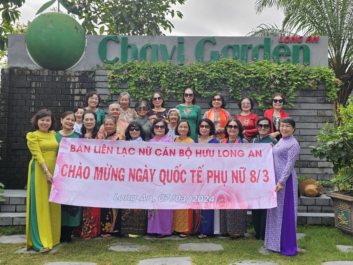 Hơn 20 nữ cán bộ hưu trí tỉnh Long An,trong đó có cán bộ lãnh đạo tỉnh, lãnh đạo các sở, ngành qua các thời kỳ cùng nhau gặp gỡ, giao lưu, ôn lại truyền thống tại khu du lịch Chavi Garden (huyện Bến Lức).