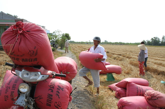 Bây giờ trước mắt chúng tôi là hình ảnh hoàn toàn khác. Lúa chín vàng hai bên đường. Xe ba gác, xe tải chở lúa chạy dập dìu. Người dân trải bạt phơi lúa chật kín bên đường. Các nhà máy xay xát “no” hàng, lúa chất như núi, tràn ra lề đường.