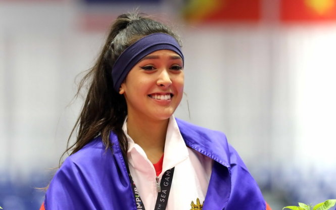 Nữ võ sĩ xinh đẹp làm “dậy sóng” thảm đấu taekwondo SEA Games