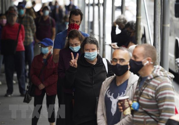Cử tri xếp hàng chờ bỏ phiếu sớm bầu Tổng thống Mỹ tại điểm bầu cử ở New York ngày 24/10/2020. (Ảnh: THX/TTXVN)