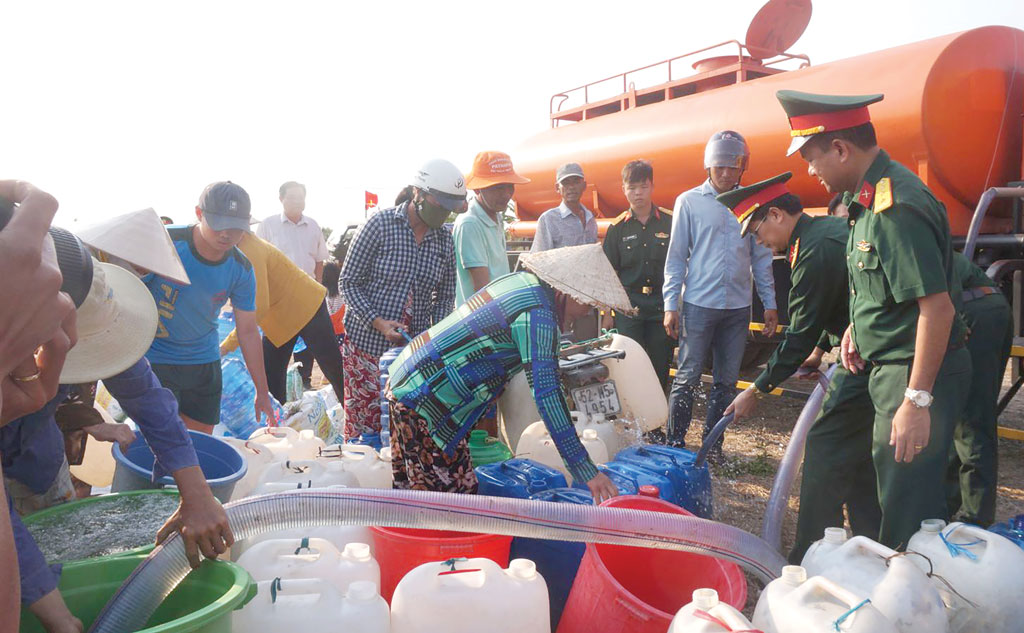 Những năm qua, bộ đội thường tổ chức cấp nước sạch cho người dân ở vùng ảnh hưởng nặng nề của hạn, mặn