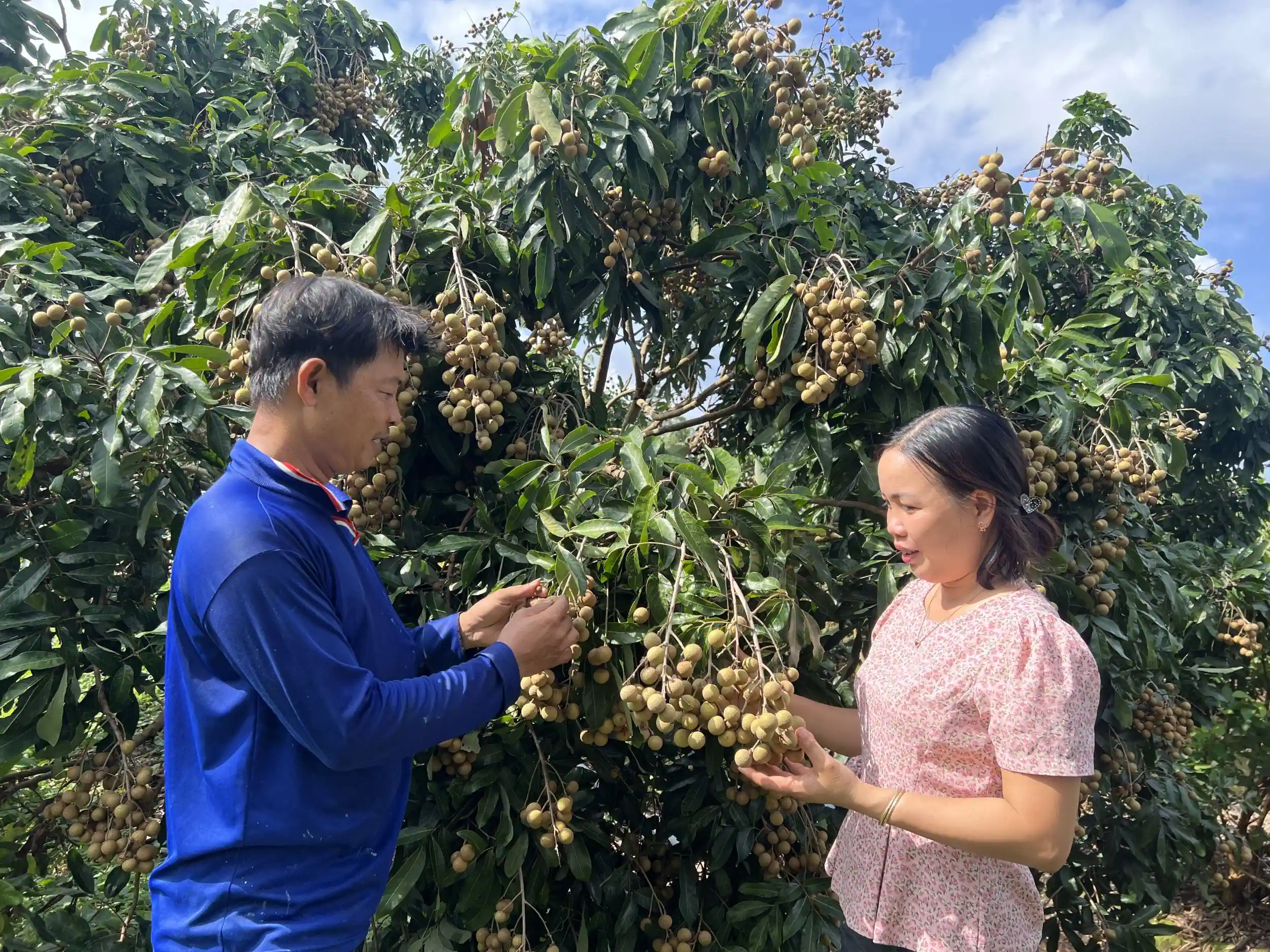 Cán bộ Phòng Kinh tế quận Ô Môn thăm hỏi hoạt động sản xuất của nhà vườn ở phường Thới An.