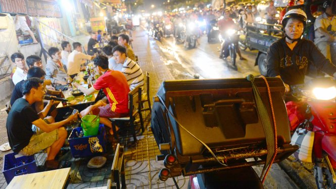 | Những chiếc loa công suất lớn gây đinh tai nhức óc được những người hát rong bán dạo sử dụng để thu hút người nghe trên đường Phạm Văn Đồng, quận Gò Vấp, TP Hồ Chí Minh. Ảnh: Quang Định |