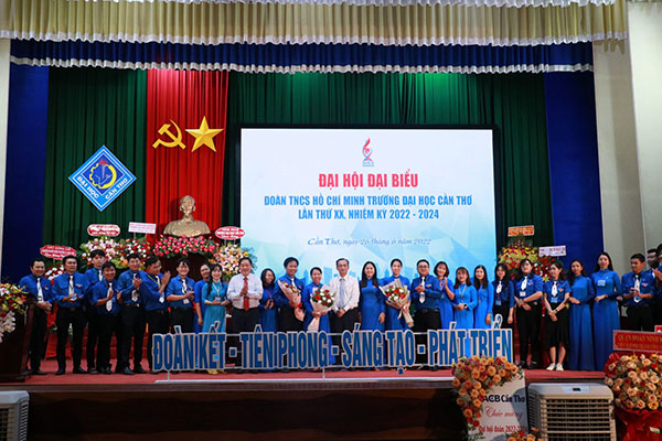 Lãnh đạo Thành đoàn và Trường Đại học Cần Thơ tặng hoa, chúc mừng Ban Chấp hành Đoàn trường nhiệm kỳ 2022-2024.