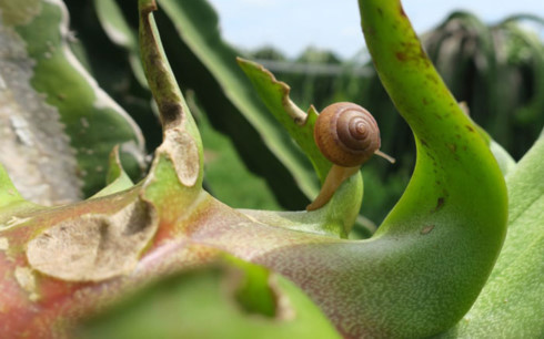 Hiện nay, vùng chuyên canh cây thanh long ở tỉnh Bình Thuận đang bị 1 loài ốc sên lạ xâm nhập, phá hoại, gây thiệt hại nặng nề. Nông dân lo lắng trước sự phát tán nhanh chóng của loài gây hại mới này.