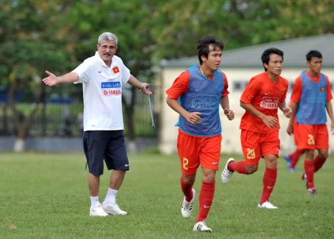 HLV Callisto (trái) và Minh Phương khi ông Callisto còn dẫn dắt tuyển VN. Ảnh: S.H