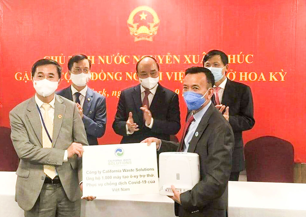 Chiều tối 22/9 giờ New York (sáng 23/9 giờ Việt Nam), tại cuộc gặp gỡ đặc biệt của Chủ tịch nước Nguyễn Xuân Phúc với cộng đồng người Việt Nam tại New York - Mỹ, Tổng Giám đốc Công ty California Waste Solutions (Mỹ) - David Dương, đã tặng 1.000 máy trợ thở tự tạo khí oxy cho Việt Nam. Tổng trị giá lô hàng là gần 3 triệu USD.