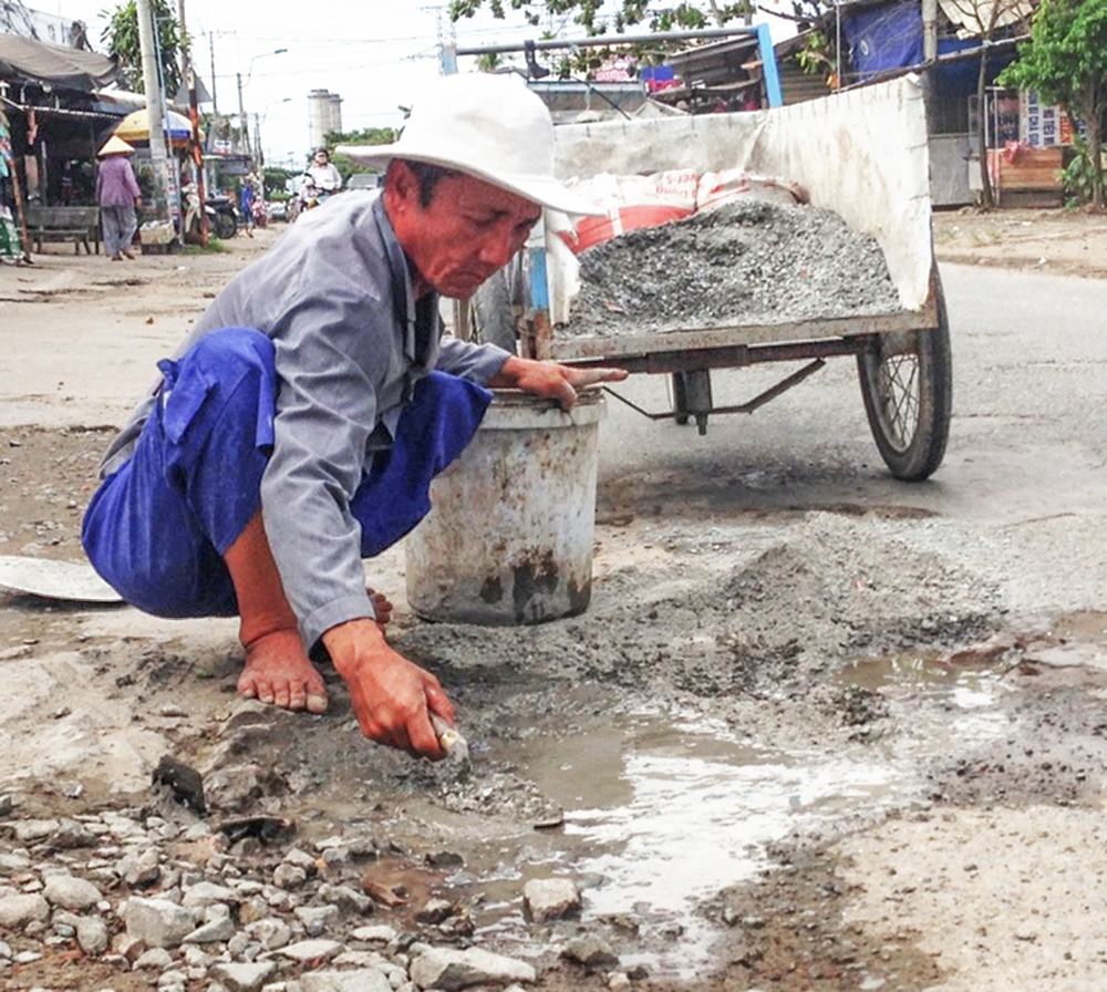 Ông Hai Dân vá đường