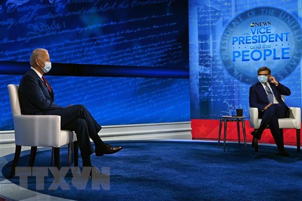 Ứng viên Tổng thống Mỹ của đảng Dân chủ Joe Biden (trái) tại phiên chất vấn của cử tri tại bang Pennsylvania tối 15/10/2020. (Ảnh: AFP/TTXVN)