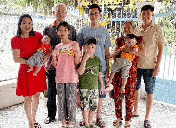 Vợ chồng ông Lê Văn Mẫu bên con cháu. Ảnh: nhân vật cung cấp
