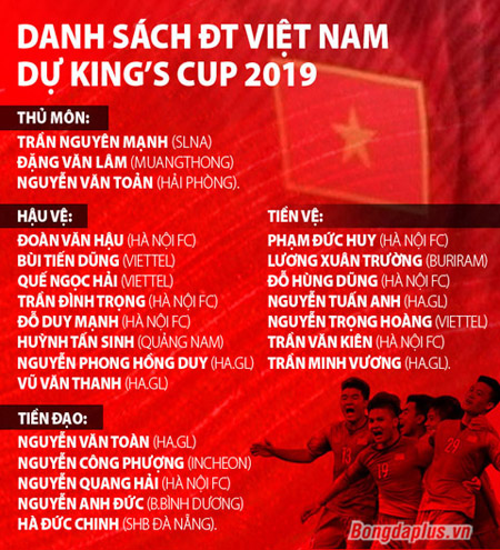 Chiều tối ngày 27/5, HLV trưởng Park Hang-seo đã lên danh sách gọi 23 cầu thủ vào Đội tuyển Việt Nam nhằm chuẩn bị cho giải đấu trước mắt-King’s Cup 2019 tại Thái Lan.