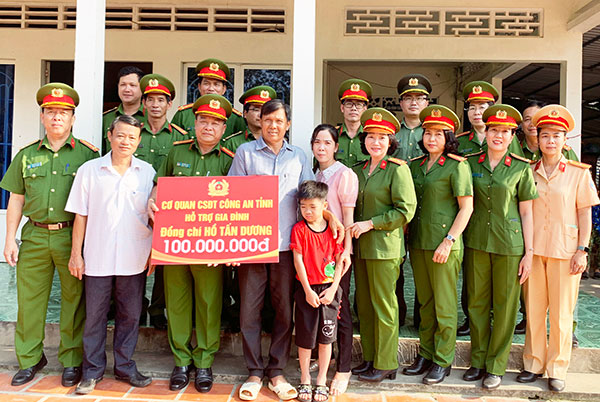 Trước đó Hội Phụ nữ cơ sở Xây dựng lực lượng, Công an tỉnh Ðồng Tháp, cũng đã đến thăm, trao tặng thẻ bảo hiểm y tế, bảo hiểm tai nạn năm 2023 cho cháu Hồ Gia Bảo và tặng 1 phần quà cùng tiền mặt cho cháu Hồ Minh Thư, 5 tuổi, con Thiếu tá Hồ Tấn Dương. Ðây là những phần quà nghĩa tình để động viên gia đình và 2 cháu vượt qua khó khăn, tiếp tục học tập để trở thành công dân tốt, phục vụ quê hương, đất nước.