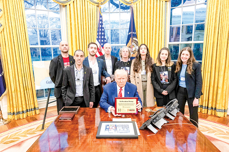 Tổng thống Trump gặp một nhóm con tin vừa được thả theo thỏa thuận ngừng bắn ở Gaza. Ảnh: X