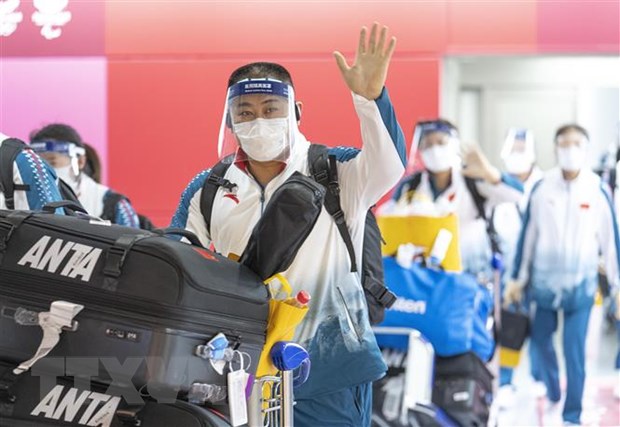 Đoàn thể thao Trung Quốc tới sân bay Narita, Nhật Bản để tham dự Paralympic Tokyo 2020, ngày 22/8/2021. (Ảnh: THX/TTXVN)