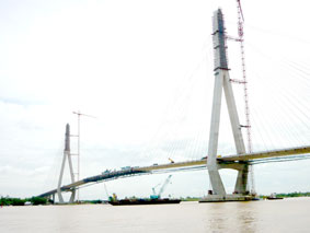 | Cầu Cần Thơ trong ngày hợp long (12-10-2009). |