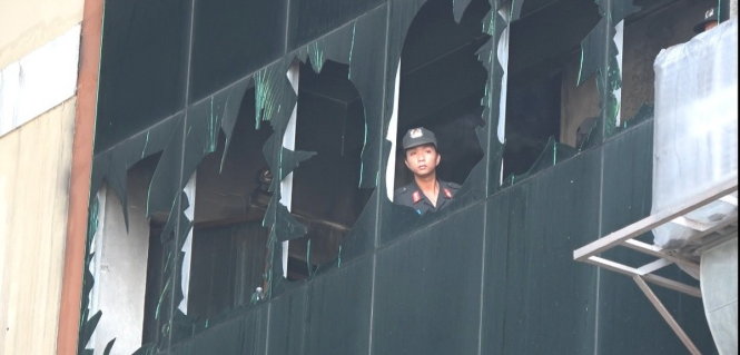 Tại hiện trường, lửa không còn nhưng các phương tiện chữa cháy vẫn luôn túc trực bên ngoài. Đại tá Trần Ngọc Hạnh, giám đốc công an Cần Thơ, chỉ đạo lực lượng cảnh sát cơ động tiếp cận để phá các cửa sổ cho khói và khí độc thoát ra.