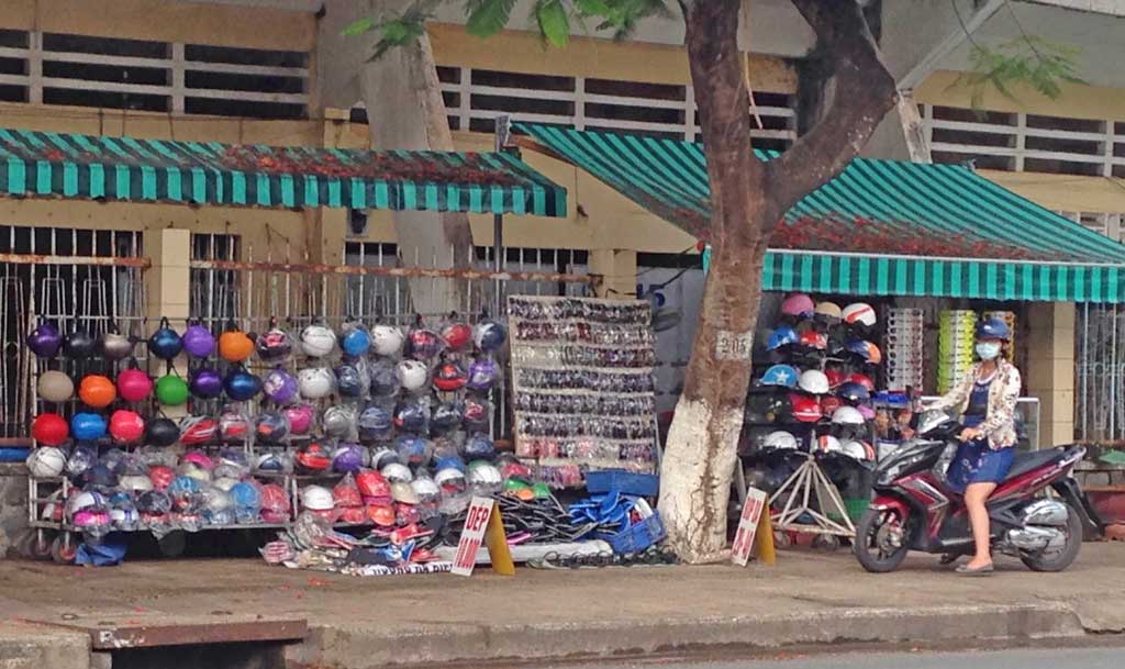 Bên cạnh những cửa hàng bán NBH uy tín, hiện nay có không ít điểm bán NBH trên lề đường, bán dạo. Theo quan sát, hình dáng bên ngoài của sản phẩm không khác nhiều so với NBH đạt chất lượng từ màu sơn, kiểu dáng, nhãn hiệu,... Ở các điểm bán không cố định này, giá cả của 1 chiếc NBH chỉ bằng phân nửa hoặc bằng 1/3 giá tiền so với hàng thật.