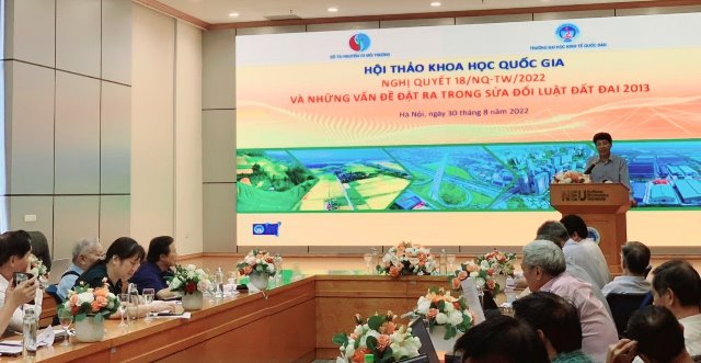 Ngày 30/8, Trường Đại học Kinh tế Quốc dân phối hợp với Bộ Tài nguyên và Môi trường và Ngân hàng Thế giới tổ chức Hội thảo Quốc gia với chủ đề: “Nghị quyết 18/NQ-TW/2022 và những vấn đề đặt ra trong sửa đổi Luật đất đai”.