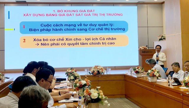 Trong khuôn khổ Hội thảo, các nhà khoa học đề cập đến các vấn đề về xác định giá đất theo cơ chế thị trường, phương pháp định giá đất và tổ chức định giá, thuế đất hạn chế đầu cơ và điều tiết giá trị tăng thêm từ đất, thu hồi và chính sách bồi thường khi thu hồi đất, hoàn thiện các cơ chế, chính sách kinh tế khác về đất đai.