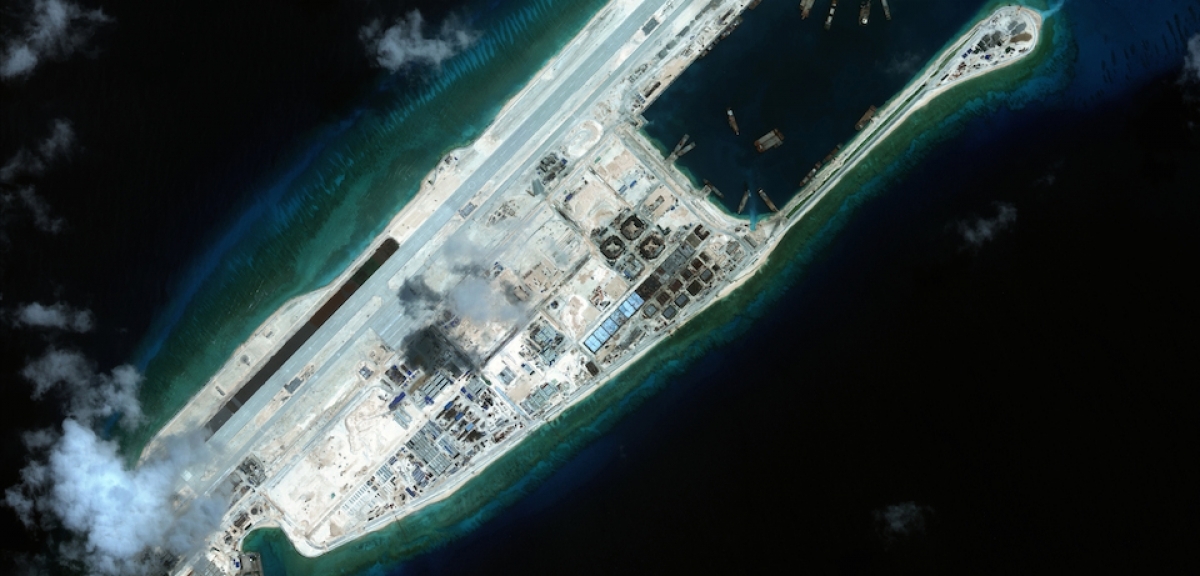 Đảo nhân tạo Trung Quốc bồi đắp trái phép ở Biển Đông. Ảnh: FP