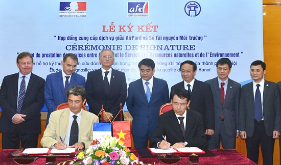 Tại buổi làm việc, Quốc vụ khanh phụ trách Phát triển và Pháp ngữ André Vallini và Chủ tịch UBND TP Hà Nội Nguyễn Đức Chung đã chứng kiến lễ ký kết “Hợp đồng dịch vụ tư vấn Dự án hỗ trợ kỹ thuật nghiên cứu đánh giá hiện trạng môi trường không khí trên địa bàn thành phố Hà Nội” giữa Sở Tài nguyên & Môi trường và Hiệp hội Airparift (Pháp).