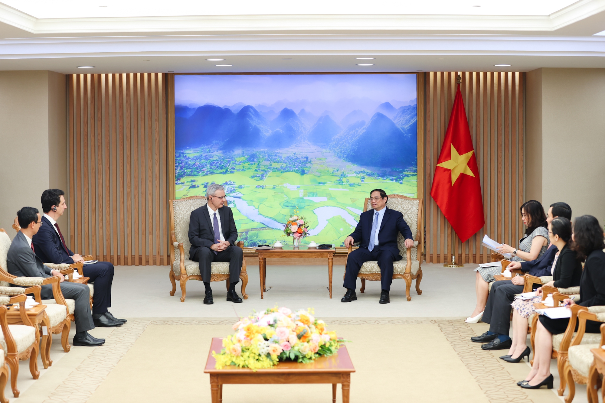 Để tăng cường quan hệ hai nước trong thời gian tới, Thủ tướng đề nghị tiếp tục thúc đẩy các cuộc tiếp xúc, trao đổi đoàn cấp cao. Nhân dịp này, qua Đại sứ Nicolas Warnery, Thủ tướng chuyển lời thăm hỏi đến Tổng thống Emmanuel Macron và Thủ tướng Elisabeth Borne, mong được đón Thủ tướng Elisabeth Borne thăm Việt Nam.