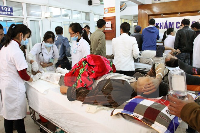 Cấp cứu cho bệnh nhân bị tai nạn giao thông tại Bệnh viện Việt Đức. (Ảnh: TTXVN/Vietnam+)