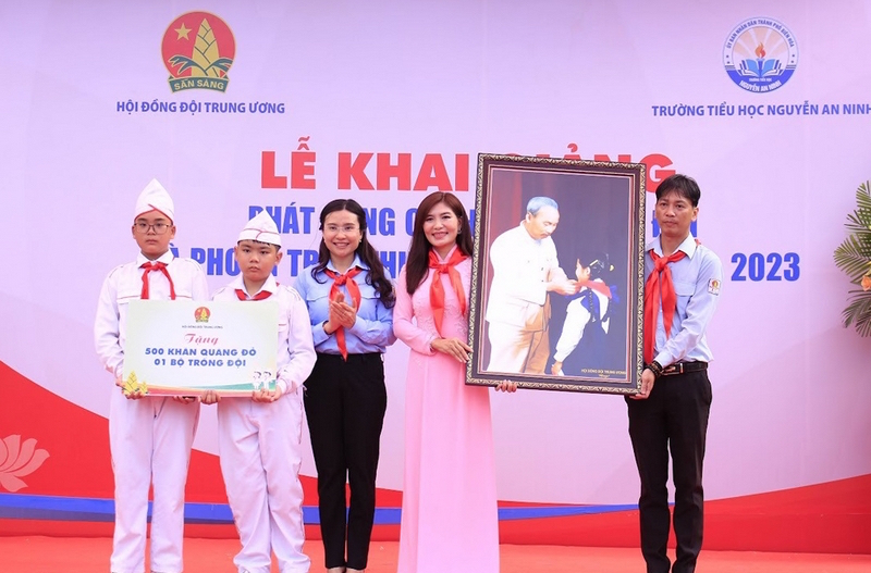 Tại buổi lễ, Hội đồng Đội Trung ương đã tặng Trường tiểu học Nguyễn An Ninh bức tranh Bác Hồ quàng khăn đỏ cho thiếu nhi với ý nghĩa nhắc nhở các em luôn thi đua học tập, rèn luyện và làm theo 5 điều Bác Hồ dạy; trao tặng 500 khăn quàng đỏ, 01 bộ trống Đội, tặng 30 suất học bổng cho 30 em thiếu nhi vượt khó học tốt (mỗi suất 1 triệu đồng).