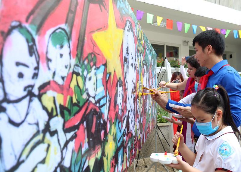 | Bí thư Trung ương Đoàn, Chủ tịch Hội đồng Đội Trung ương Nguyễn Ngọc Lương; bà Lianys Torres Rivera, Đại sứ đặc mệnh toàn quyền Cuba tại Việt Nam cùng các em thiếu nhi tham gia vẽ tranh hưởng ứng Cuộc thi |