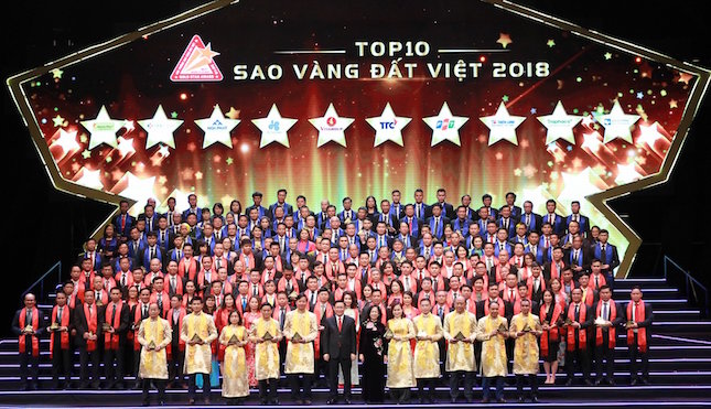 | Các đồng chí lãnh đạo Đảng, Nhà nước trao giải thưởng Sao Vàng đất Việt 2018 cho các doanh nghiệp |