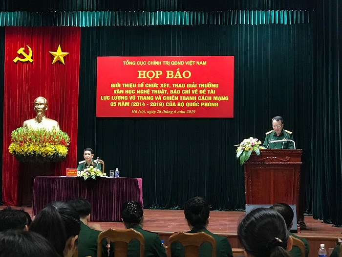 Chiều 28/6, tại Hà Nội, Cục Tuyên huấn (Tổng cục Chính trị Quân đội nhân dân) tổ chức họp báo công bố xét, trao Giải thưởng văn học nghệ thuật, báo chí về đề tài Lực lượng vũ trang và chiến tranh cách mạng 05 năm (2014 - 2019) tổ chức trên các loại hình: Văn học, âm nhạc, nghệ thuật múa, mỹ thuật, sân khấu, điện ảnh, nhiếp ảnh và báo chí nhân Kỷ niệm 30 năm Ngày hội Quốc phòng toàn dân (22/12/1989 – 22/12/2019), 75 năm Ngày thành lập Quân đội nhân dân Việt Nam (22/12/1944 – 22/12/2019).