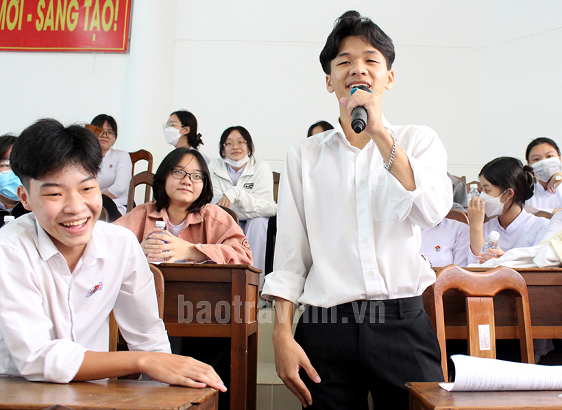 Học sinh Trường Thực hành sư phạm Trà Vinh trả lời câu hỏi về kiến thức ATGT.