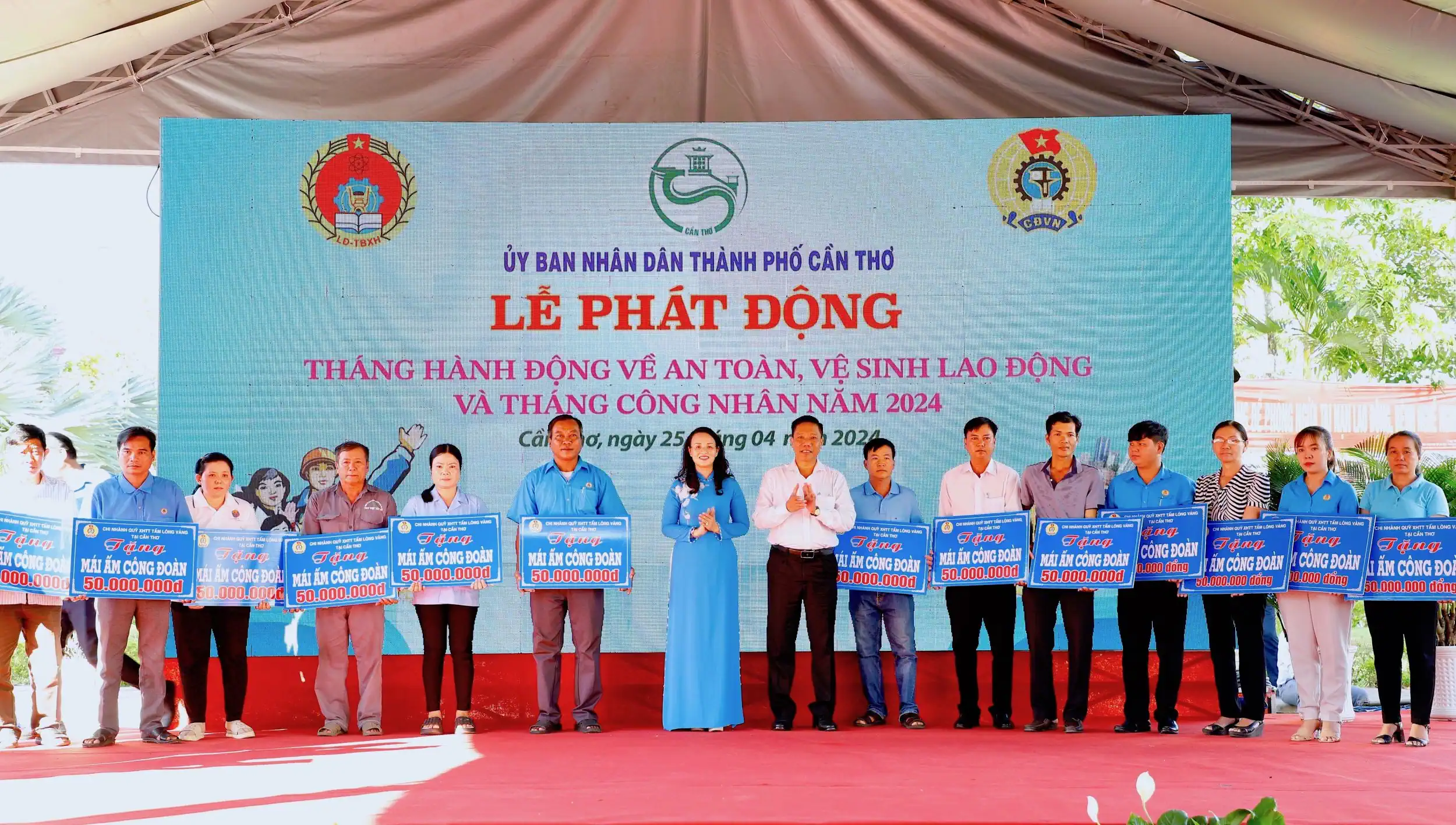 Tại buổi lễ, đồng chí Nguyễn Thực Hiện phát động Tháng hành động về ATVSLĐ năm 2024 với chủ đề “Tăng cường đảm bảo ATVSLĐ tại nơi làm việc và trong chuỗi cung ứng” và Tháng Công nhân năm 2024 với chủ đề “Đoàn kết công nhân - Triển khai nghị quyết”. Đồng thời đề nghị các ngành, các cấp, các doanh nghiệp, cơ sở sản xuất kinh doanh và toàn thể người lao động trên địa bàn thành phố tích cực hưởng ứng Tháng hành động về ATVSLĐ và Tháng công nhân với nhiều hình thức phong phú, thiết thực, tiết kiệm và hiệu quả. Các sở, ban, ngành thành phố và UBND các quận, huyện tăng cường triển khai các giải pháp phòng ngừa TNLĐ; tổ chức tập huấn về ATVSLĐ cho người sử dụng lao động và người lao động của các doanh nghiệp, cơ sở sản xuất kinh doanh. LĐLĐ, Hội Nông dân, Thành đoàn và các hội nghề nghiệp tăng cường tuyên truyền, vận động người lao động, hội viên chấp hành tốt các nội quy, quy trình làm việc an toàn...
