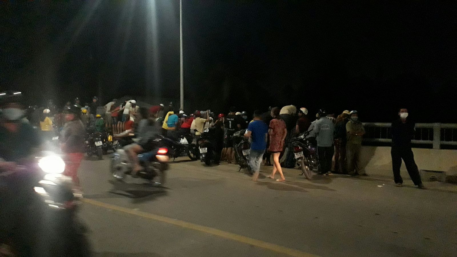 Vụ việc thu hút nhiều người kéo đến xem và đứng ngay trên cầu làm cản trở giao thông.