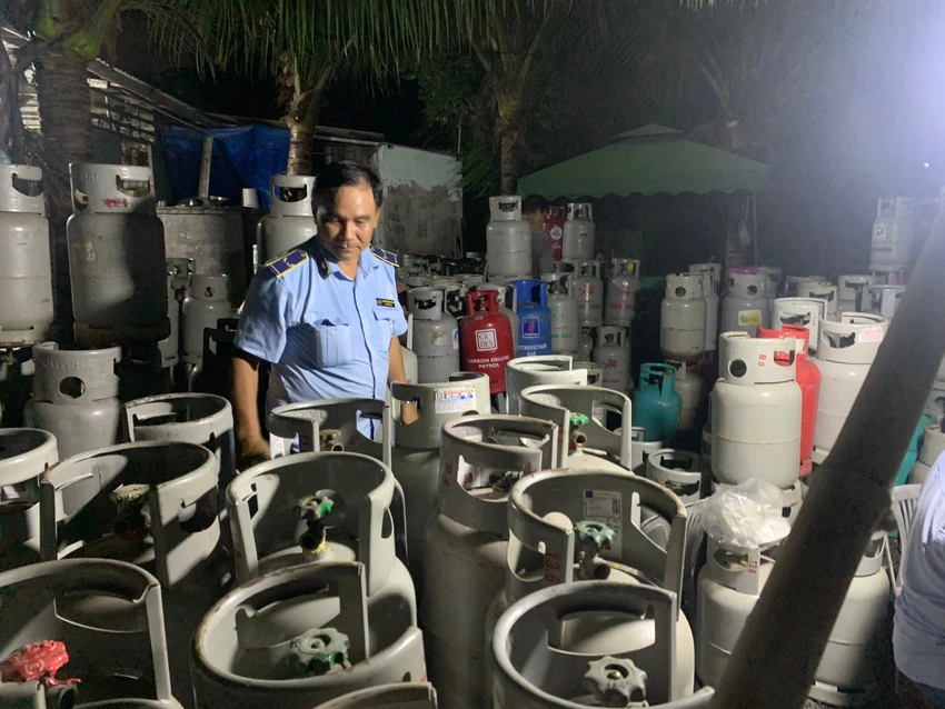 Vào lúc 17 giờ cùng ngày, Đội QLTT số 15 phối hợp với Công an xã Bình Chánh tiến hành kiểm tra điểm chứa trữ, kinh doanh chai LPG (bình gas) tại Ấp 2, xã Bình Chánh, huyện Bình Chánh, thành phố Hồ Chí Minh. Qua kiểm tra, lực lượng chức năng phát hiện tại đây đang kinh doanh chứa trữ 323 bình gas các loại, các nhãn hiệu, đã qua sử dụng.