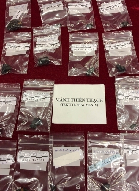 Các mảnh thiên thạch tìm thấy tại các hố khai quật di tích Gò Đá (phường An Bình, thị xã An Khê). (Ảnh:K.T)