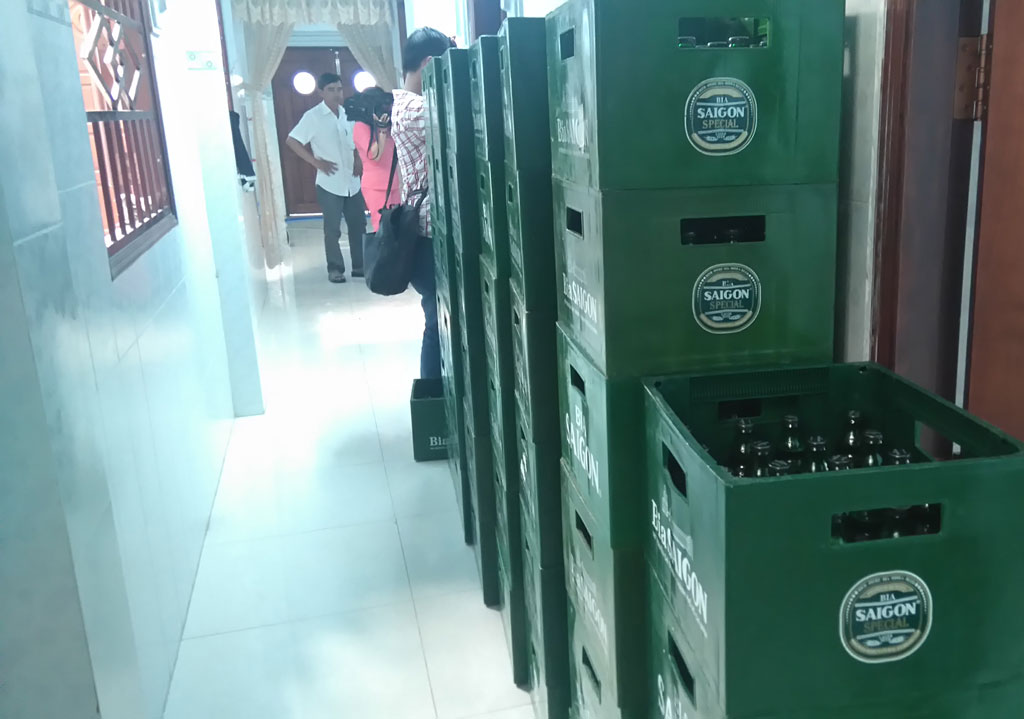 Qua kiểm tra, lực lượng công an phát hiện cơ sở có 2.885 vỏ chai bia Sài Gòn lager loại 450 ml, 2.045 vỏ chai bia Sài Gòn special lager loại 330 ml, 2.040 chai bia Sài Gòn lager loại 450 ml để làm nguyên liệu sang chiết và 1.245 chai bia Sài Gòn special lager loại 330 ml đã thành phẩm.