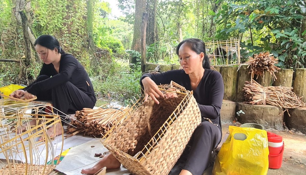 | Đồng Tháp có 21 làng nghề và 18 làng nghề truyền thống được công nhận như: Đan lờ lợp, đóng xuồng, dệt chiếu, dệt choàng, trồng hoa kiểng, làm bột ... là nguồn tài nguyên văn hóa bản địa độc đáo. (Ảnh: Hoàng Mẫn) |