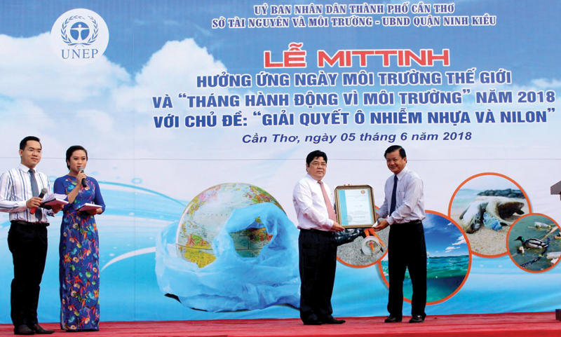 Lãnh đạo TP Cần Thơ và Sở TN&MT thành phố công bố chứng nhận Cần Thơ là “Thành phố có tiềm năng trở thành thành phố tiềm năng bền vững về môi trường ASEAN lần thứ 3, lĩnh vực không khí” nhân Lễ mít tinh hưởng ứng Ngày môi trường thế giới năm 2018.