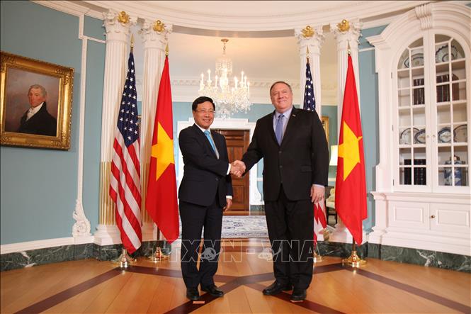 Tại cuộc hội đàm với Ngoại trưởng Pompeo và các cuộc gặp với Phó Cố vấn An ninh Quốc gia Kupperman và với Trợ lý Tổng thống Kellogg, Phó Thủ tướng, Bộ trưởng Ngoại giao Phạm Bình Minh khẳng định: Việt Nam coi trọng và sẵn sàng trao đổi với Mỹ nhằm củng cố và làm sâu sắc hơn quan hệ Đối tác toàn diện Việt Nam - Hoa Kỳ, trên cơ sở tôn trọng độc lập, chủ quyền, thể chế chính trị, vì lợi ích của hai nước, góp phần duy trì hòa bình, ổn định, hợp tác và phát triển của khu vực châu Á - Thái Bình Dương và trên thế giới.