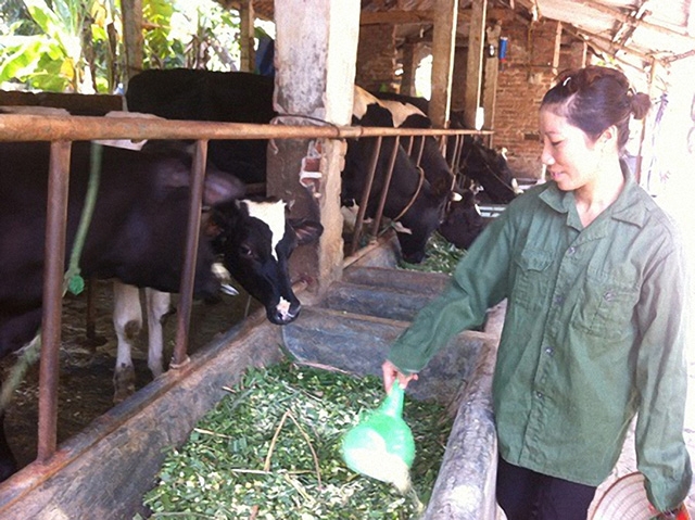 Là hội viên nông dân sản xuất kinh doanh giỏi ở xã Nhuận Trạch, huyện Lương Sơn (Hòa Bình), chị Hoàng Thị Thanh Thúy chia sẻ, với sự hướng dẫn, hỗ trợ của Hội Nông dân, gia đình tôi đã mạnh dạn xây dựng mô hình trang trại nuôi bò sữa. Hiệu quả sản xuất nông nghiệp đã được nâng lên rõ rệt. Hiện nay, bình quân một ngày khai thác được 20 lít sữa/con; trung bình sản lượng sữa bán ra thị trường mỗi ngày đạt khoảng 300 lít /ngày. Hằng năm, sau khi trừ chi phí các loại, trang trại bò sữa đã mang về cho gia đình chị Thúy thu nhập từ 600 – 700 triệu đồng.