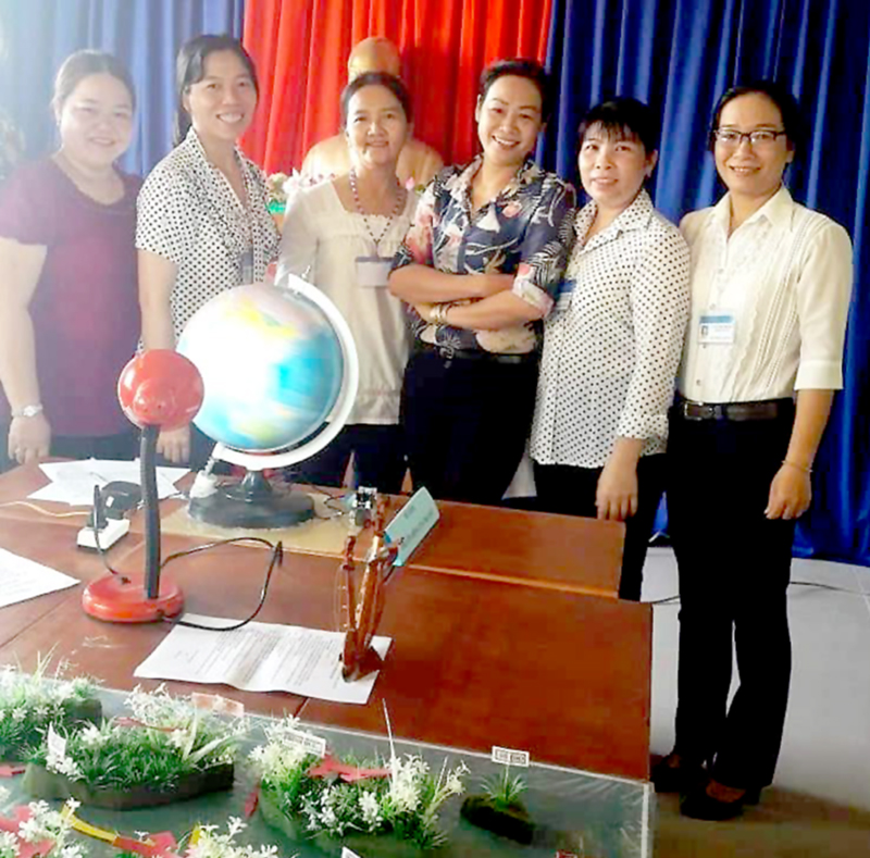 Các giáo viên, đảng viên tham gia hội thi đồ dùng dạy học của trường. (Ảnh: Nhà trường cung cấp).