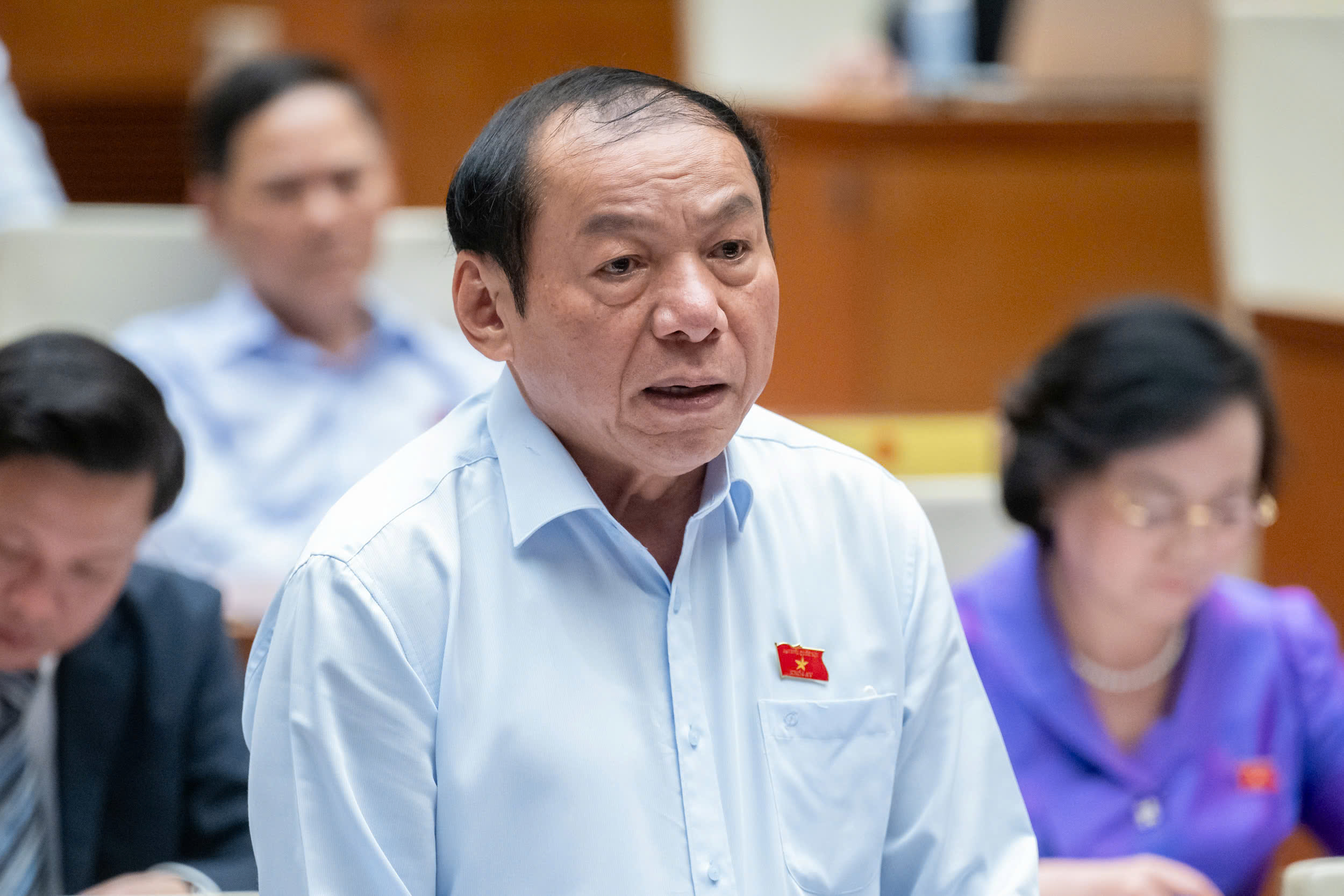 | Bộ trưởng Bộ Văn hóa, Thể thao và Du lịch Nguyễn Văn Hùng trả lời tại phiên chất vấn chiều 21/8. Ảnh: QH |