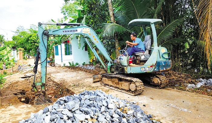 Thi công nâng cấp lộ cặp sông Ấp Mỹ.
