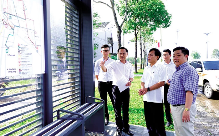 Lãnh đạo TP Cần Thơ kiểm tra tiến độ thi công nhà chờ, điểm dừng xe buýt trên địa bàn thành phố.