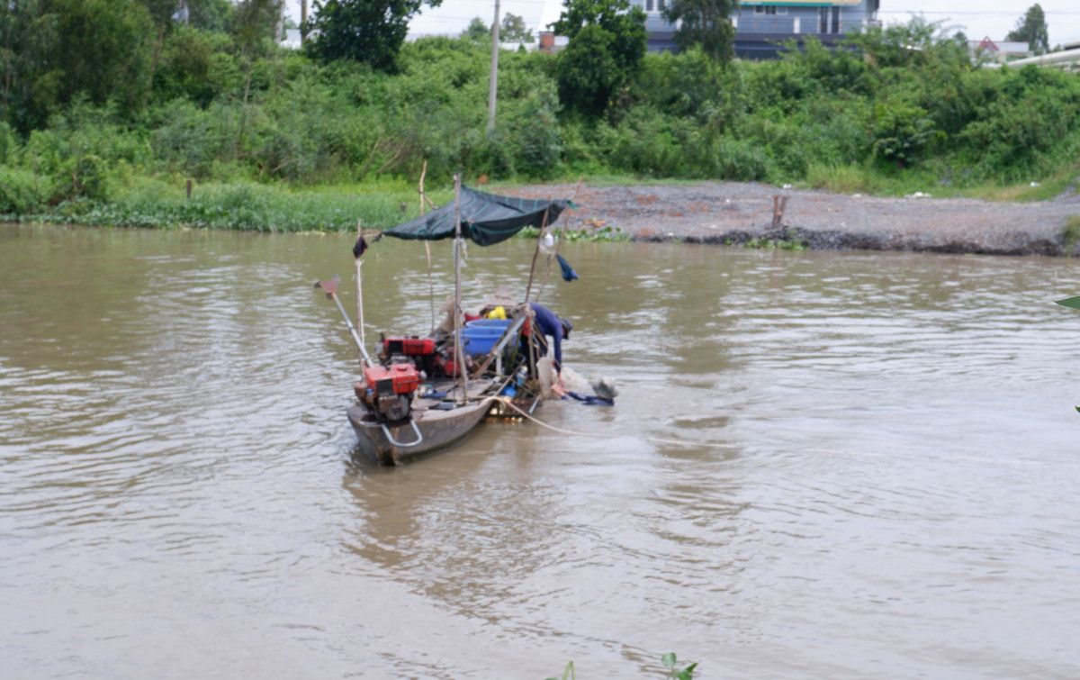 2. Những ngày này, trên dòng kênh 79 (đoạn qua xã Thạnh Hưng, thị xã Kiến Tường), dễ dàng bắt gặp hàng chục chiếc xuồng của người dân xúc trùn chỉ. Theo quan sát, dụng cụ xúc trùn chỉ khá đơn giản, chỉ cần cái vợt bằng lưới cước, cán làm bằng sắt, vài cái thau để ủ và đãi trùn. Mỗi xuồng thường có 3 người, trong đó, người nào có sức khỏe tốt thì lặn xuống sông và kéo vợt, còn người nào yếu sức hơn thì đãi trùn chỉ.