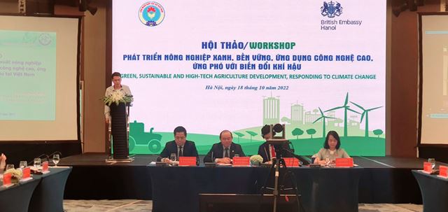 Chiều 18/10, tại Hà Nội, Hội thảo “Phát triển nông nghiệp xanh, bền vững, ứng dụng công nghệ cao, ứng phó với biến đổi khí hậu” đã thu hút sự tham dự của đông đảo đại biểu trong nước và quốc tế. Hội thảo do Liên minh hợp tác xã Việt Nam (LMHTXVN) phối hợp với Đại sứ quán Anh tại Việt Nam tổ chức với cả hai hình thức trực tiếp và trực tuyến.