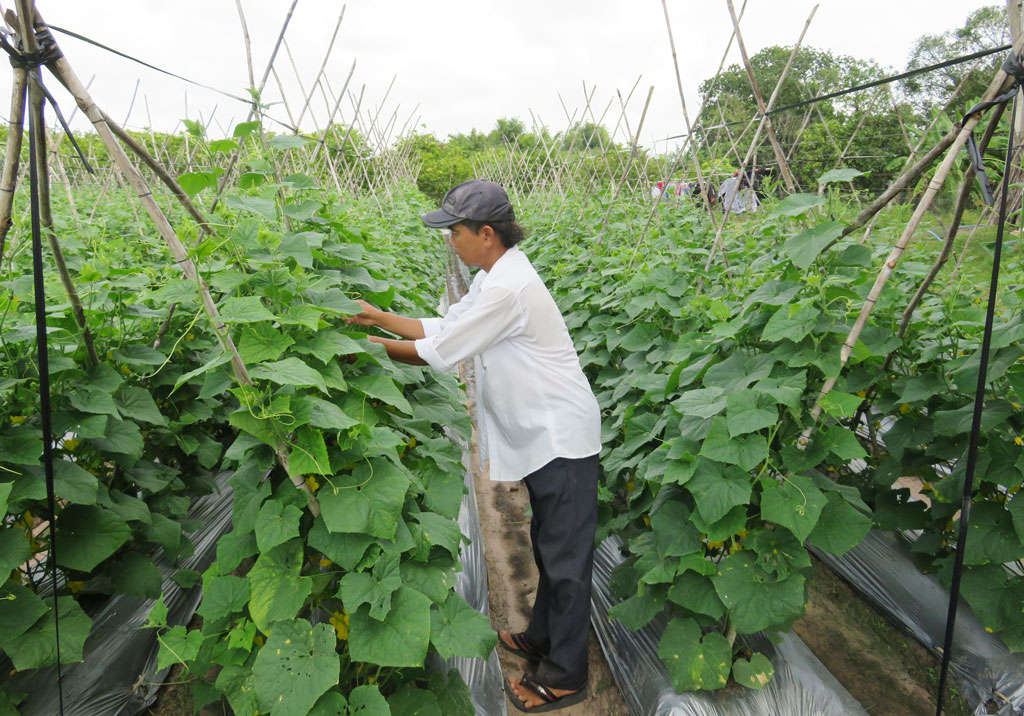 Ông Nguyễn Văn Tài (thành viên HTX) hiện có 6.000m2 đất trồng khổ qua, đậu đũa, chia sẻ: “Từ khi tham gia HTX, các thành viên được tập huấn kiến thức về quy trình trồng rau an toàn kết hợp sử dụng phân hữu cơ. Nhờ đó, rau ít sâu, bệnh, năng suất lẫn chất lượng đều tăng. Bình quân sau 3 tháng trồng rau, nông dân lãi từ 70-100 triệu đồng/ha/vụ”.