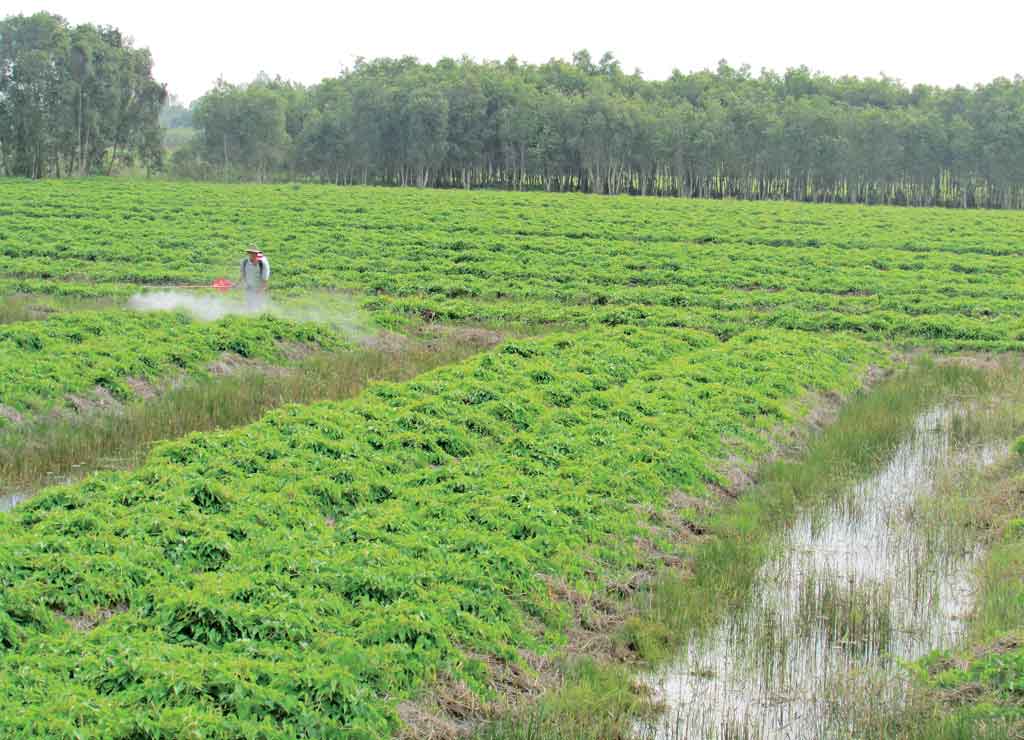 Chuyển đổi cơ cấu cây trồng mang lại hiệu quả cao (Trong ảnh: Chuyển đổi cơ cấu cây trồng (từ đất lúa sang trồng khoai mỡ) đạt hiệu quả tại thị trấn Thạnh Hóa, huyện Thạnh Hóa)